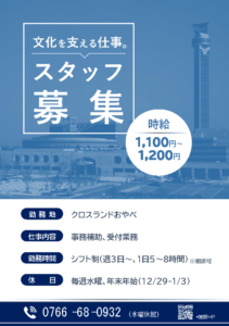 クロスランドおやべでは、一緒に働いてくれるスタッフを募集中です。