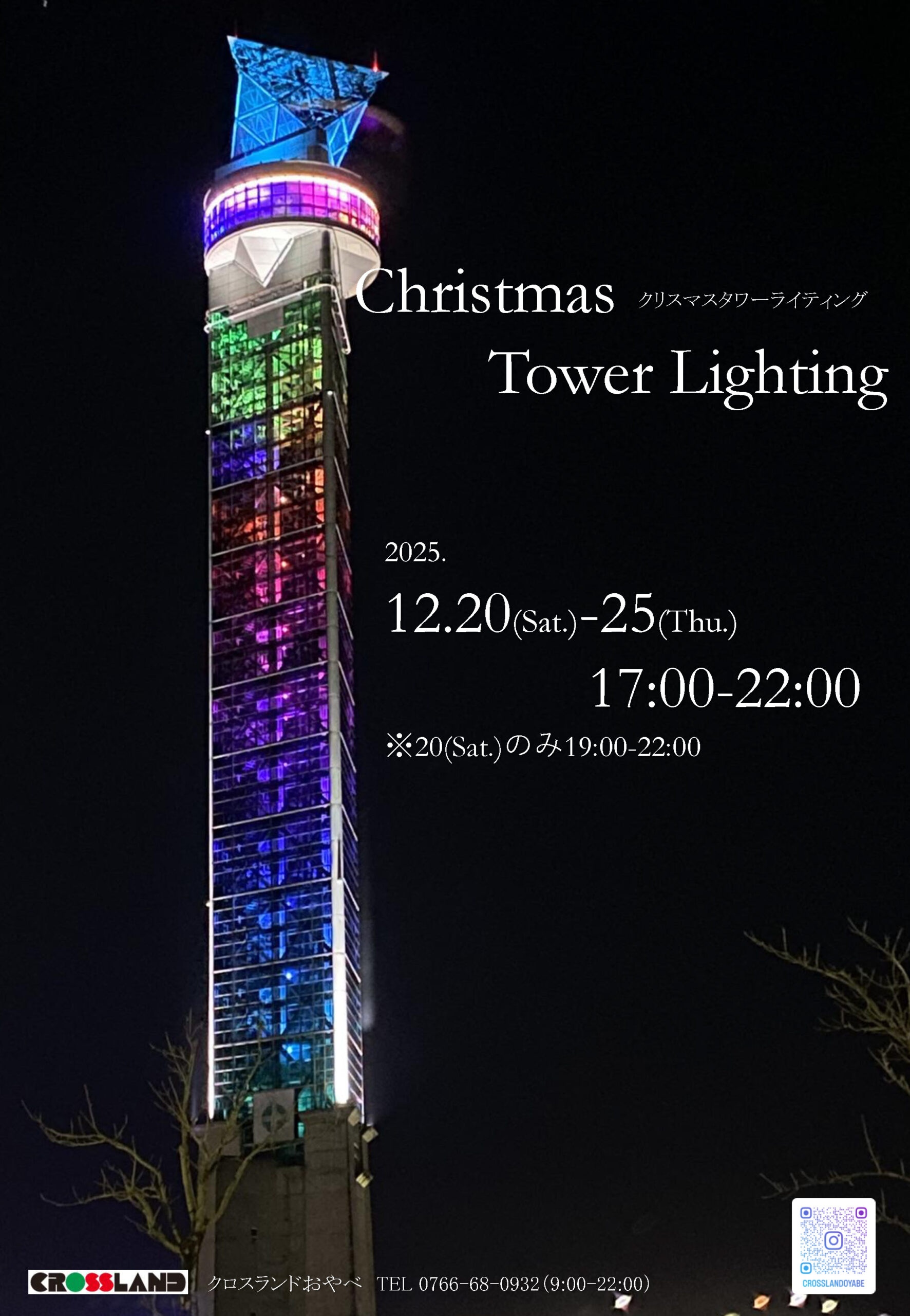 クリスマスにあわせて、クロスランドタワーを特別な装いに